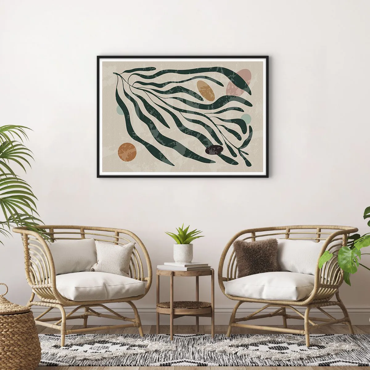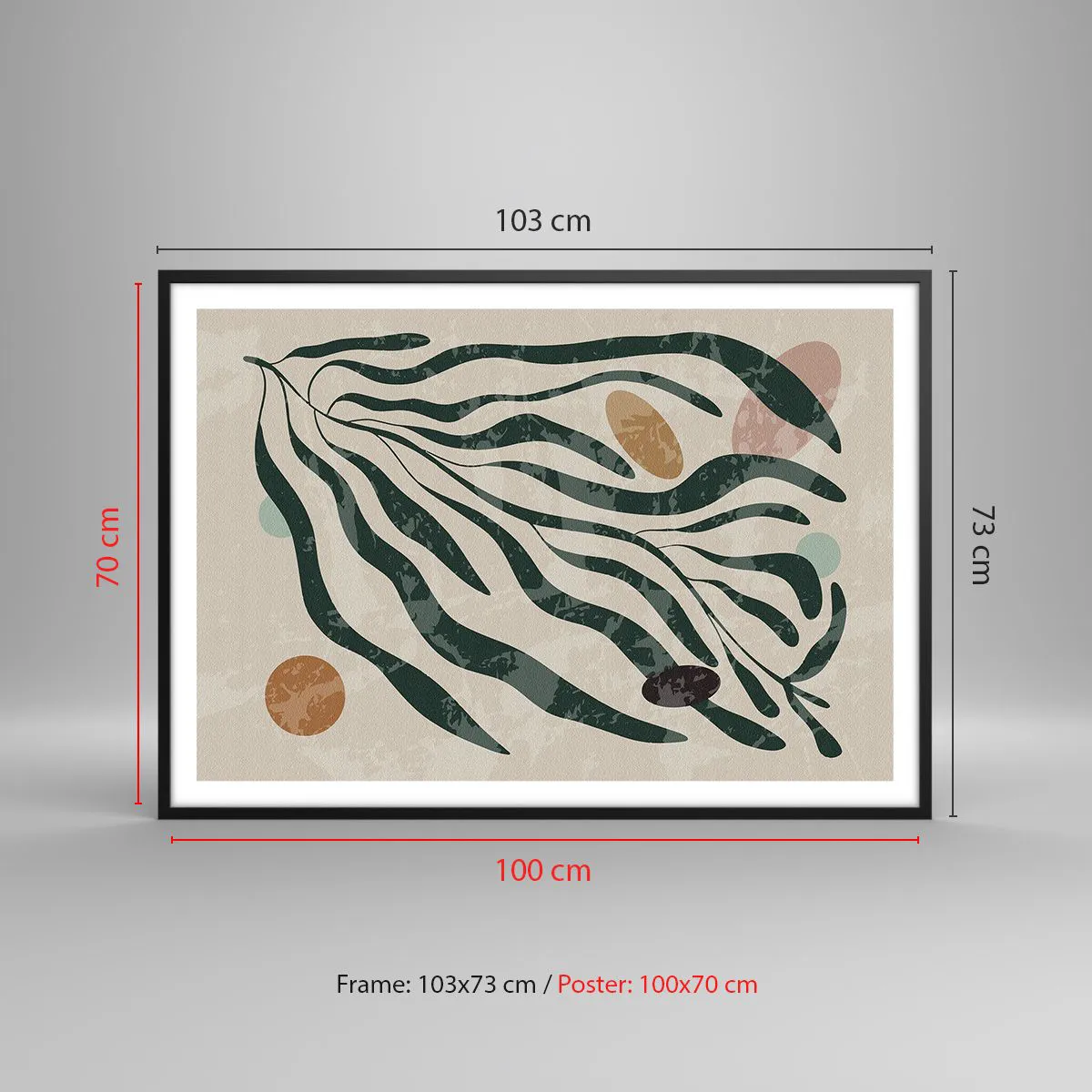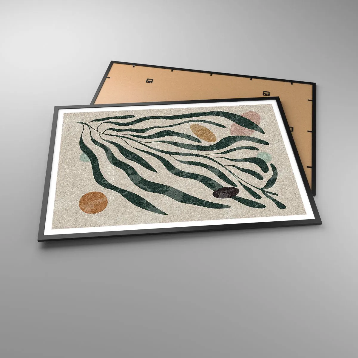 Poster in einem schwarzem Rahmen - Organische Linien und Formen in Grün und Beige - 100x70cm - Im Grünen - Moderne Wanddekoration für Wohnzimmer und Schlafzimmer ARTTOR