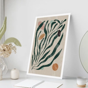 Poster - Organische Linien und Formen in Grün und Beige - 100x70cm - Im Grünen - Moderne Wanddekoration für Wohnzimmer und Schlafzimmer ARTTOR