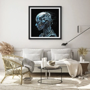 Poster in einem schwarzem Rahmen - Kybernetische Figur im futuristischen Stil - 50x70cm - Technologie ist eine Frau - Moderne Wanddekoration für Wohnzimmer und Schlafzimmer ARTTOR
