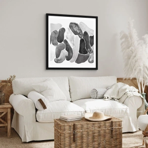 Poster in einem schwarzem Rahmen - Schwarz-weiße Abstraktion mit unregelmäßigen Flecken auf weißem Hintergrund - 70x50cm - Felsige Abstraktion - Moderne Wanddekoration für Wohnzimmer und Schlafzimmer ARTTOR