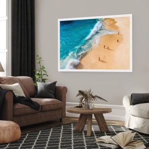 Poster - Ein Strand mit türkisfarbenem Wasser und herumlaufenden Menschen - 100x70cm - Und dann die Sonne, der Strand… - Moderne Wanddekoration für Wohnzimmer und Schlafzimmer ARTTOR
