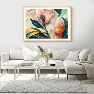 Poster in einem Rahmen aus heller Eiche - Blumen der südlichen Inseln - 30x30 cm