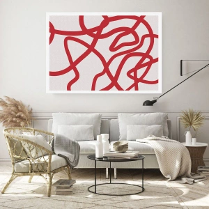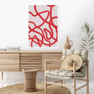 Poster - Abstrakte Komposition aus dynamischen roten Linien auf hellem Hintergrund. - 50x70cm - Rot auf Weiß - Moderne Wanddekoration für Wohnzimmer und Schlafzimmer ARTTOR