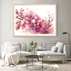Poster in einem Rahmen aus heller Eiche - Kirschblütenblüte - 91x61 cm