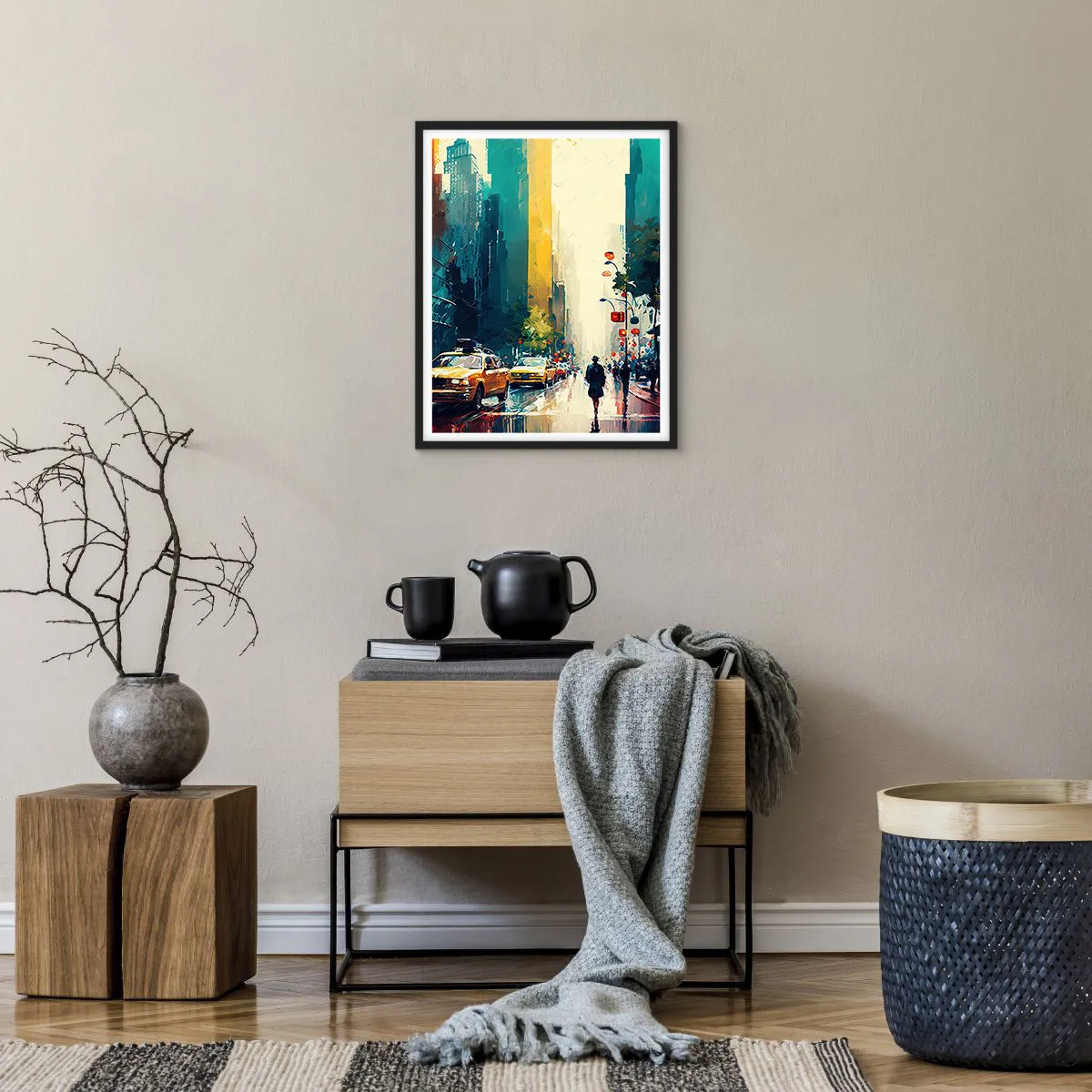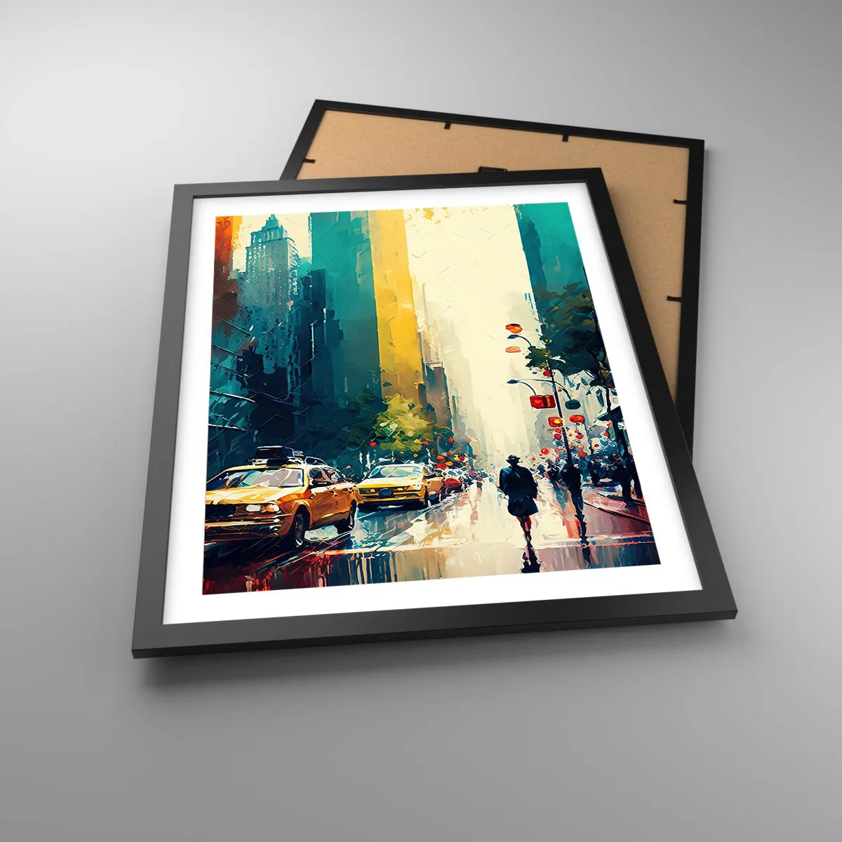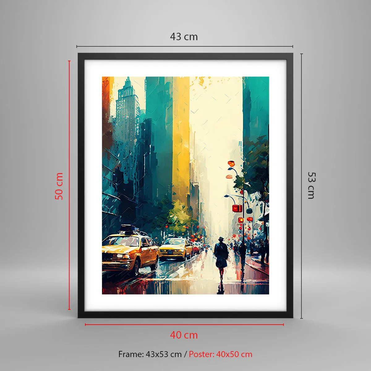 Poster in einem schwarzem Rahmen - New York – selbst der Regen ist hier bunt - 40x50 cm