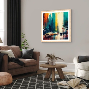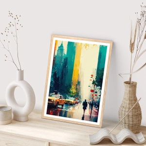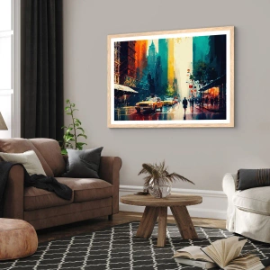 Poster in einem Rahmen aus heller Eiche - New York – selbst der Regen ist hier bunt - 61x91 cm