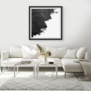 Poster in einem schwarzem Rahmen - Schwarz-Weiß-Abstraktion mit kontrastierenden Pinselstrichen - 70x50cm - Elemente: Erde - Moderne Wanddekoration für Wohnzimmer und Schlafzimmer ARTTOR
