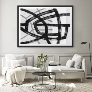 Poster in einem schwarzem Rahmen - Schwarz-weiße abstrakte Linien, die sich auf hellem Hintergrund kreuzen - 100x70cm - Bautiefe - Moderne Wanddekoration für Wohnzimmer und Schlafzimmer ARTTOR