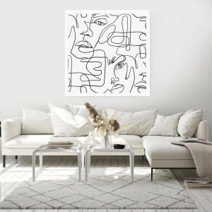 • Gesichter, Linie, Augen, Abstrakt, Schwarzweiß, Menschen, Kunst, Für das Büro, für das Arbeitszimmer, für das Esszimmer, für das Jugendzimmer, für den Flur, für das Wohnzimmer, für das Schlafzimmer, Weiß, Schwarz, Schwarz und Weiß, Quadrat