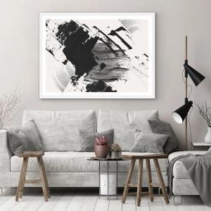 Poster in einem weißen Rahmen - Abstraktion – Ausdruck von Schwarz - 91x61 cm