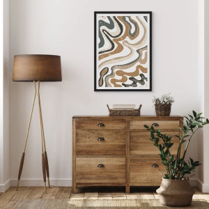 Poster in einem schwarzem Rahmen - Mäander in Erdfarben - 61x91 cm