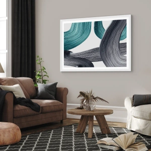 Poster in einem weißen Rahmen - Smaragdgrüne und schwarze Pfade - 30x30 cm