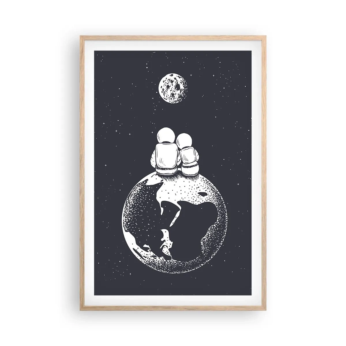 Poster in einem Rahmen aus heller Eiche - Kosmische Liebesgeschichte - 61x91 cm