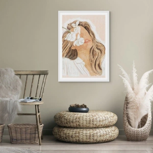 Poster in einem weißen Rahmen - Unter den Blumen in Verzückung - 50x70 cm