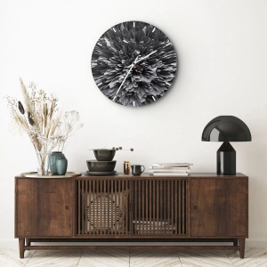 Die Uhr besteht aus 4 mm dickem Sicherheitsglas Glas. Die Herstellungstechnologie der Uhr entspricht der Sicherheitsklasse 2B2 gemäß der Norm PN-EN 12600: 2004, die Stoßfestigkeit garantiert. Die Uhr auf dem Glas ist bereit zu hängen - es hat einen Metallanhänger, einen Anhänger auf der Rückseite der Uhr und einen Schaumstoffabstand, der einen gleichmäßigen Abstand zwischen der Uhr und der Wand reguliert. Die Uhr hat einen geräuschlosen Schwimmmechanismus, der von einer 1,5-V-Batterie betrieben wird - AA-Batterie inbegriffen).