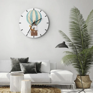 Wanduhr – Fantastische Reise – Ballon mit Giraffe und Elefant schweben in den Wolken