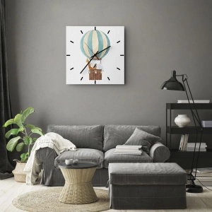 Wanduhr - Glasuhr - Ein Ballon mit einer Giraffe und einem Elefanten, der in den Wolken schwebt - 30x30cm - Fantastische Reise - Moderne Wanddekoration für Wohnzimmer, Küche und Schlafzimmer ARTTOR
