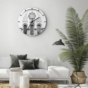 Die Uhr besteht aus 4 mm dickem Sicherheitsglas Glas. Die Herstellungstechnologie der Uhr entspricht der Sicherheitsklasse 2B2 gemäß der Norm PN-EN 12600: 2004, die Stoßfestigkeit garantiert. Die Uhr auf dem Glas ist bereit zu hängen - es hat einen Metallanhänger, einen Anhänger auf der Rückseite der Uhr und einen Schaumstoffabstand, der einen gleichmäßigen Abstand zwischen der Uhr und der Wand reguliert. Die Uhr hat einen geräuschlosen Schwimmmechanismus, der von einer 1,5-V-Batterie betrieben wird - AA-Batterie inbegriffen).