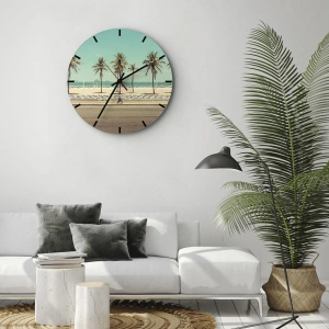 Wanduhr - Glasuhr - Beim Bewachen des Strandes - 40x40 cm