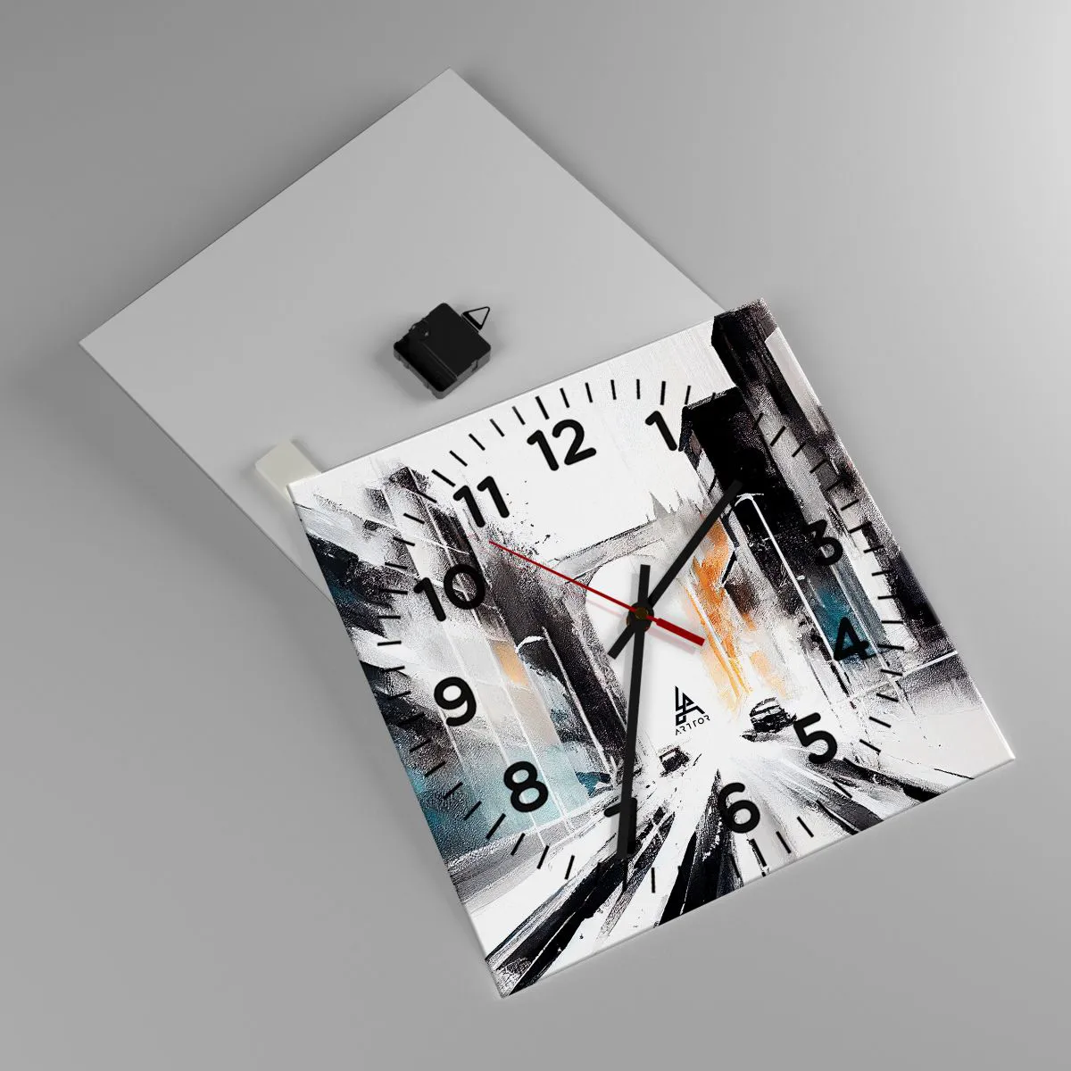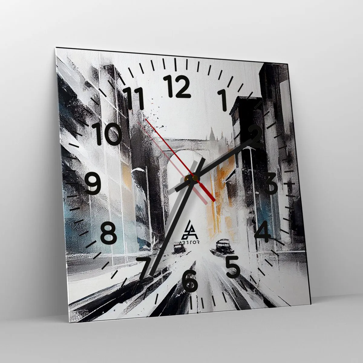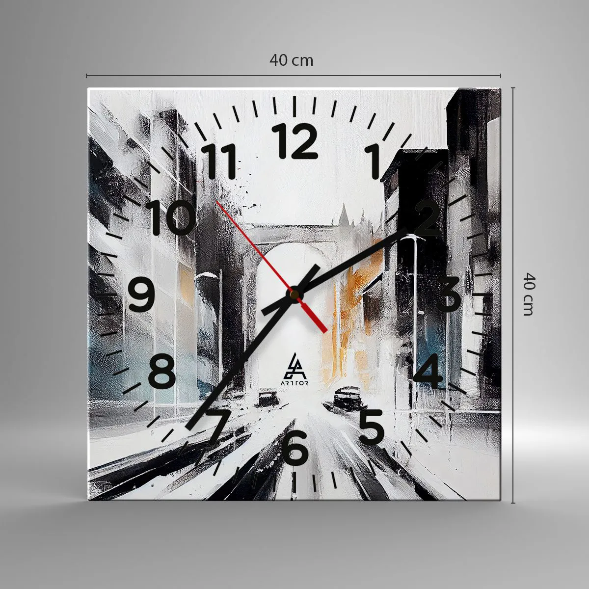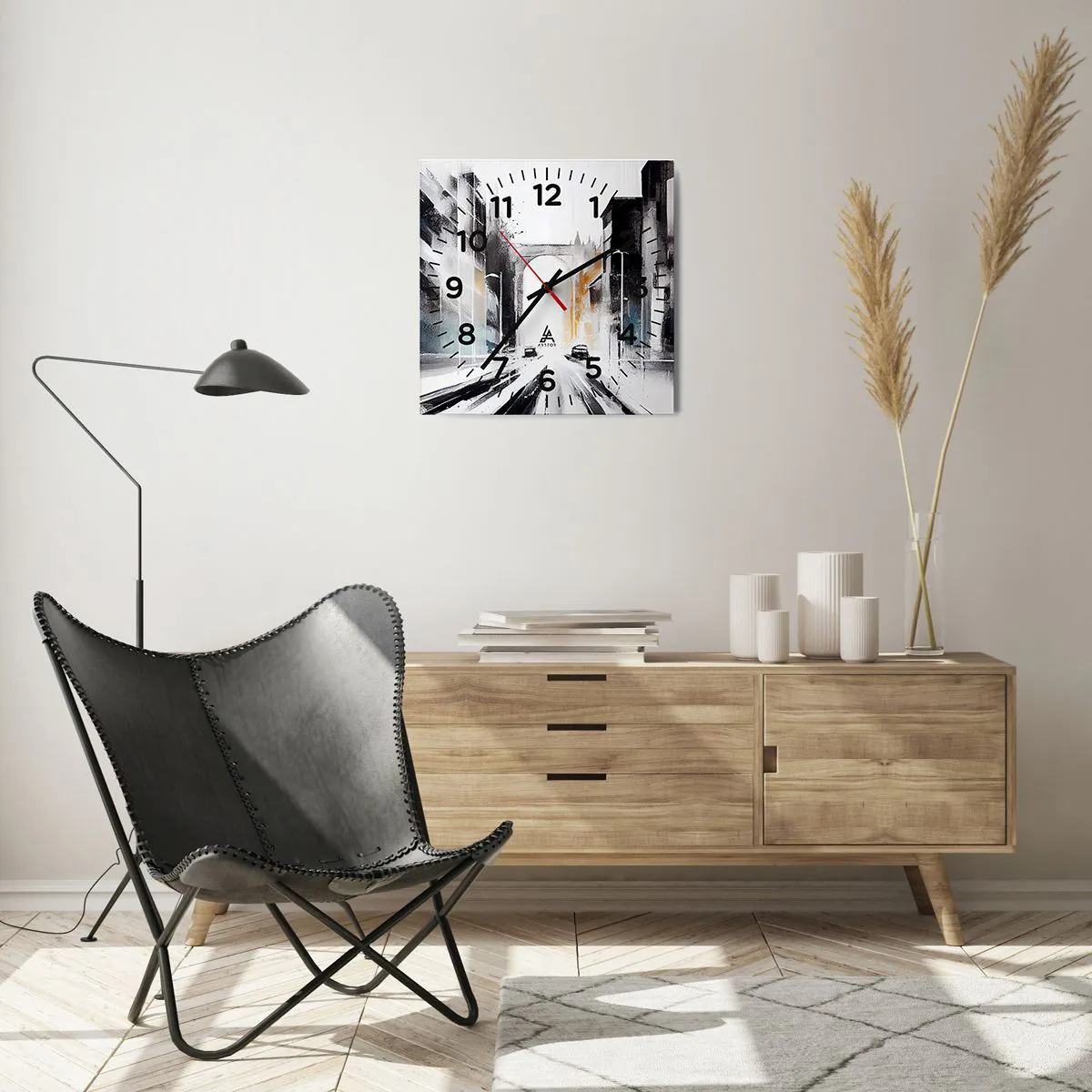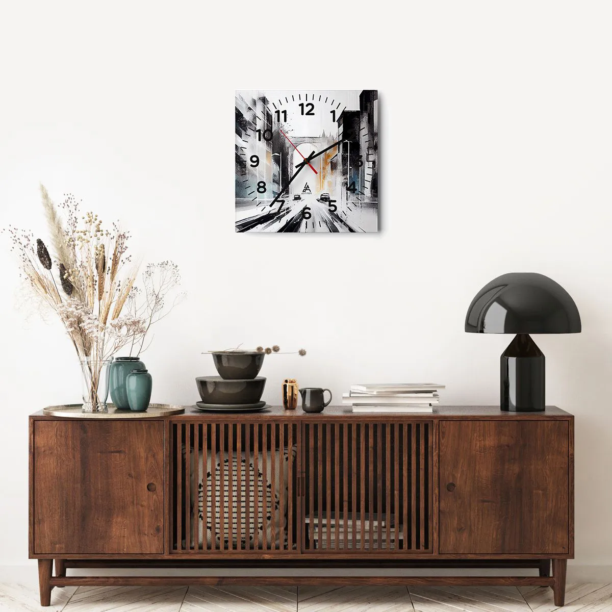 Wanduhr - Glasuhr - Stadtstudie: Architektur und Bewegung - 40x40 cm