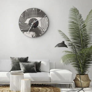 Die Uhr besteht aus 4 mm dickem Sicherheitsglas Glas. Die Herstellungstechnologie der Uhr entspricht der Sicherheitsklasse 2B2 gemäß der Norm PN-EN 12600: 2004, die Stoßfestigkeit garantiert. Die Uhr auf dem Glas ist bereit zu hängen - es hat einen Metallanhänger, einen Anhänger auf der Rückseite der Uhr und einen Schaumstoffabstand, der einen gleichmäßigen Abstand zwischen der Uhr und der Wand reguliert. Die Uhr hat einen geräuschlosen Schwimmmechanismus, der von einer 1,5-V-Batterie betrieben wird - AA-Batterie inbegriffen).