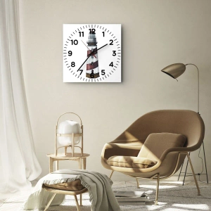 Die Uhr besteht aus 4 mm dickem Sicherheitsglas Glas. Die Herstellungstechnologie der Uhr entspricht der Sicherheitsklasse 2B2 gemäß der Norm PN-EN 12600: 2004, die Stoßfestigkeit garantiert. Die Uhr auf dem Glas ist bereit zu hängen - es hat einen Metallanhänger, einen Anhänger auf der Rückseite der Uhr und einen Schaumstoffabstand, der einen gleichmäßigen Abstand zwischen der Uhr und der Wand reguliert. Die Uhr hat einen geräuschlosen Schwimmmechanismus, der von einer 1,5-V-Batterie betrieben wird - AA-Batterie inbegriffen).