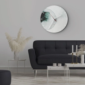 Die Uhr besteht aus 4 mm dickem Sicherheitsglas Glas. Die Herstellungstechnologie der Uhr entspricht der Sicherheitsklasse 2B2 gemäß der Norm PN-EN 12600: 2004, die Stoßfestigkeit garantiert. Die Uhr auf dem Glas ist bereit zu hängen - es hat einen Metallanhänger, einen Anhänger auf der Rückseite der Uhr und einen Schaumstoffabstand, der einen gleichmäßigen Abstand zwischen der Uhr und der Wand reguliert. Die Uhr hat einen geräuschlosen Schwimmmechanismus, der von einer 1,5-V-Batterie betrieben wird - AA-Batterie inbegriffen).