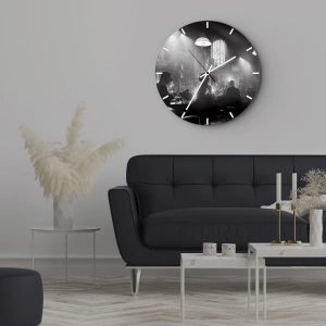 Die Uhr besteht aus 4 mm dickem Sicherheitsglas Glas. Die Herstellungstechnologie der Uhr entspricht der Sicherheitsklasse 2B2 gemäß der Norm PN-EN 12600: 2004, die Stoßfestigkeit garantiert. Die Uhr auf dem Glas ist bereit zu hängen - es hat einen Metallanhänger, einen Anhänger auf der Rückseite der Uhr und einen Schaumstoffabstand, der einen gleichmäßigen Abstand zwischen der Uhr und der Wand reguliert. Die Uhr hat einen geräuschlosen Schwimmmechanismus, der von einer 1,5-V-Batterie betrieben wird - AA-Batterie inbegriffen).
