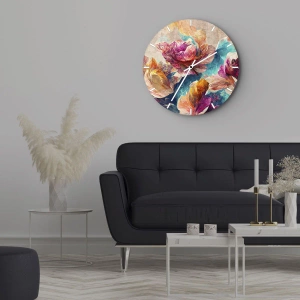 Wanduhr - Glasuhr - Farbenpracht des Straußes - 40x40 cm