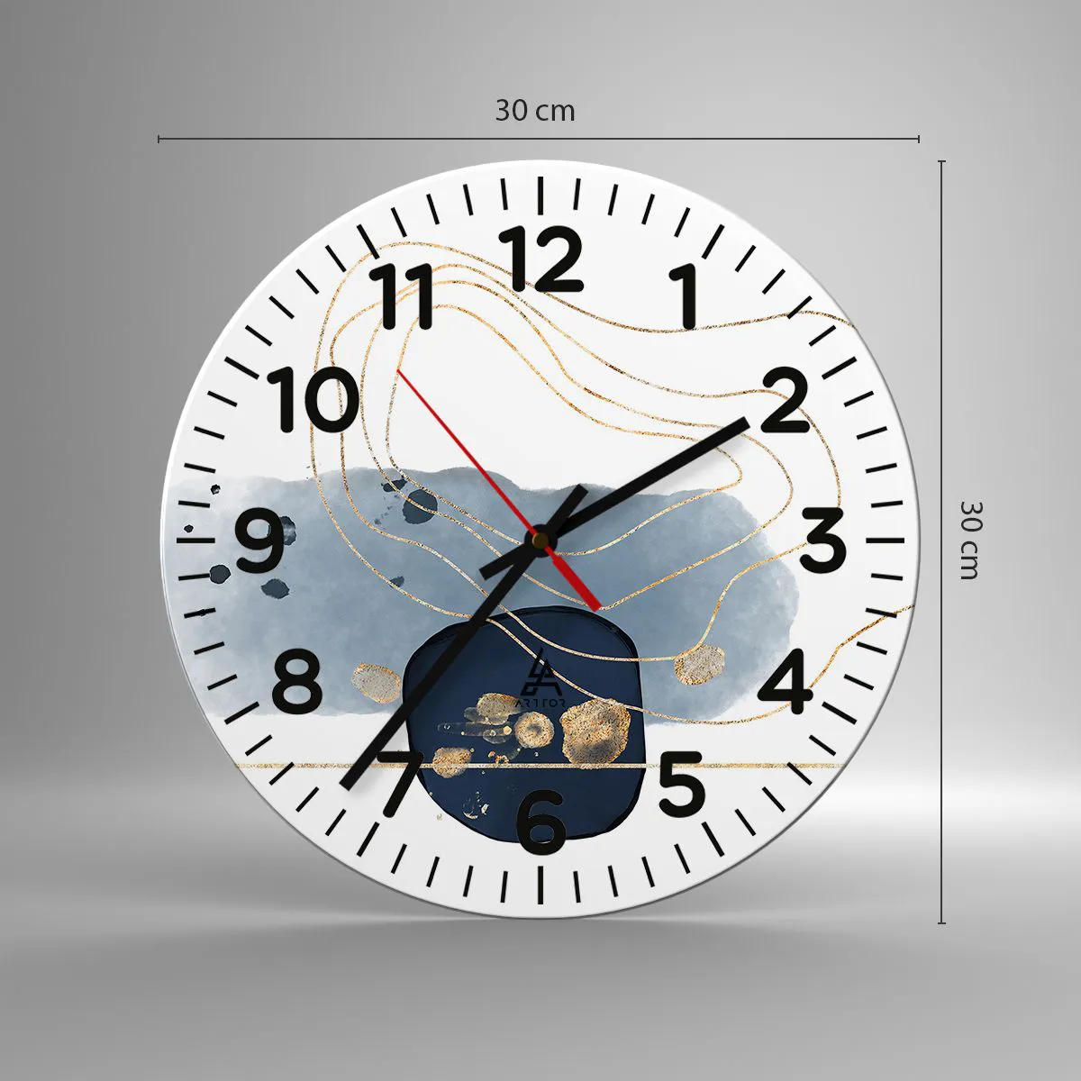 Wanduhr - Glasuhr - Blau-goldene Fantasie - 30x30 cm