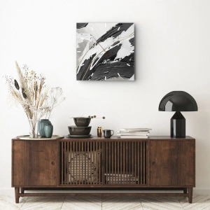 Wanduhr - Glasuhr - Dynamische Pinselstriche in Schwarz, Weiß und Grau - 30x30cm - Abstraktion in großem Stil - Moderne Wanddekoration für Wohnzimmer, Küche und Schlafzimmer ARTTOR