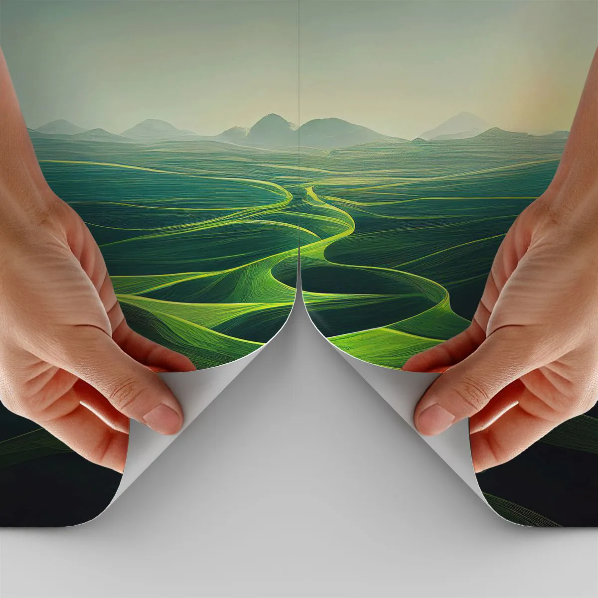 Die „Tapete in grünen Tälern“ ist ein reizvolles Angebot für alle, die einen Hauch von Natur in ihr Interieur bringen möchten. Die Komposition zeigt wogende grüne Täler, sanft vom Morgenlicht erhellt, wodurch ein stimmiger und harmonischer Raum entsteht. Dieses Motiv fällt sofort ins Auge und wirkt entspannend.