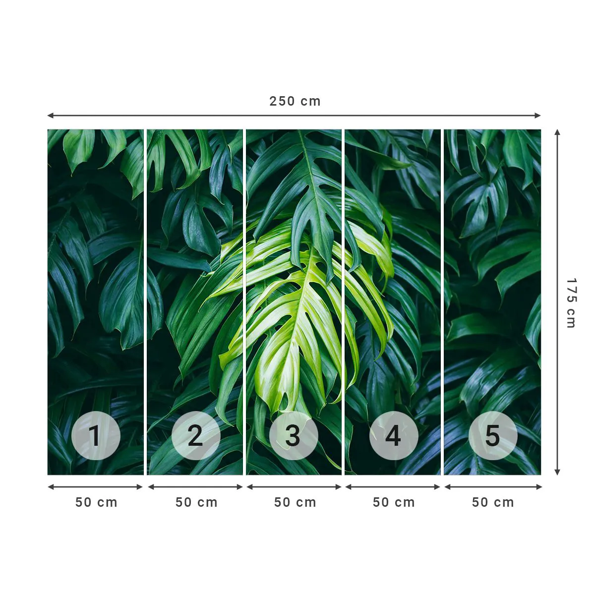 Selbstklebende Fototapete Deluxe Sticker - Tauchen Sie ein in die Frische - Tropische Pflanze, Monstera-Blatt, Natur - 250x175 cm