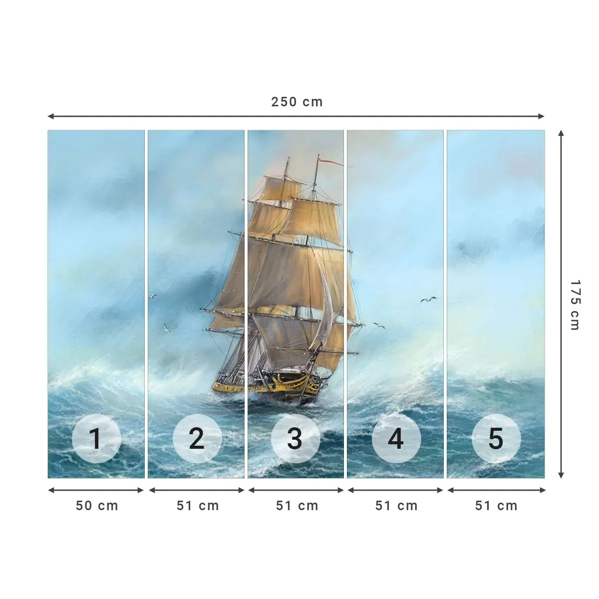 Selbstklebende Fototapete Deluxe Sticker - Über die Wellen gleiten - Meer, Schiff, Nautisch - 250x175 cm
