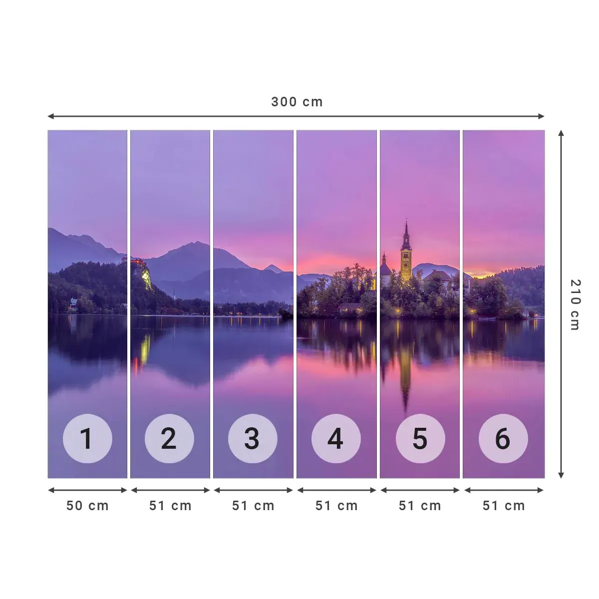Selbstklebende Fototapete Deluxe Sticker - Eine märchenhafte Insel in der Abenddämmerung - Landschaft, Slowenien, Insel Bled - 300x210 cm