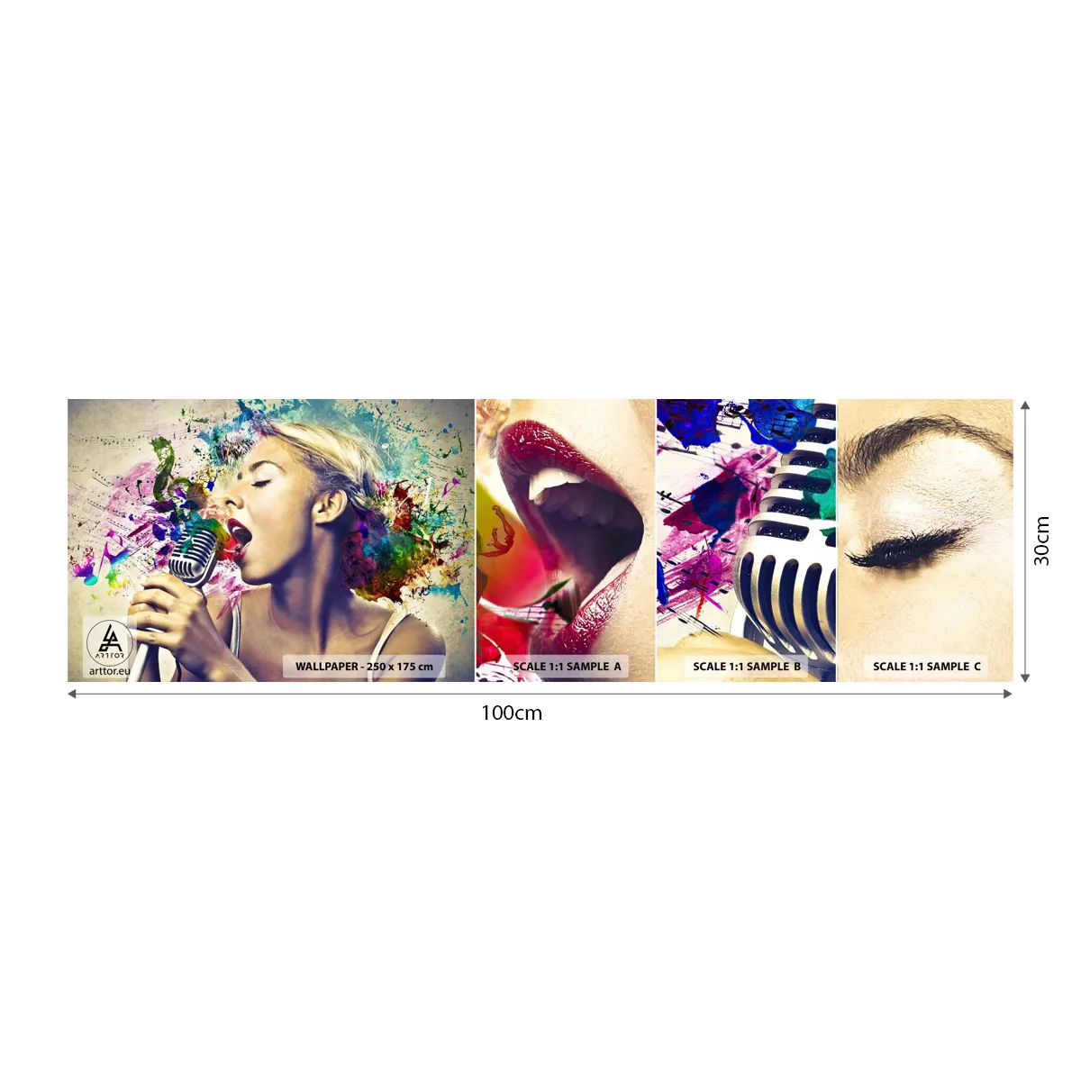 Fototapetenmuster Standard Eco - Malen Sie die Welt mit Ihrer Stimme - Frau, Musik, 3D - 100x30 cm