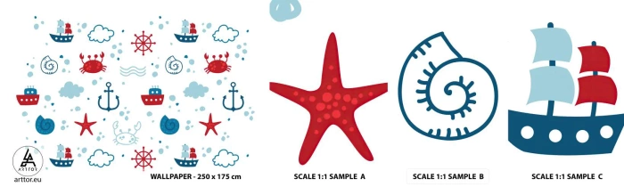 Fototapetenmuster Standard Eco - Märchen vom Meer - Segeln, Nautisch, Anker - 100x30 cm