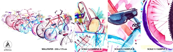 Fototapetenmuster Standard Eco - Kongress des Antimoto-Clubs - Fahrrad, Abstraktion, Grafik - 100x30 cm