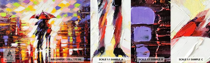Fototapetenmuster Standard Eco - Gemeinsam durch die Nacht und den Regen - Abstraktion, Verliebtes Pärchen, Im Regen spazieren gehen - 100x30 cm