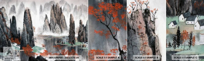 Die matte Textur der Fototapete minimiert Lichtreflexionen und kaschiert so kleine Wandunebenheiten. Moderne Drucktechnologie sorgt für natürlich gesättigte Farben, die dem Innenraum einen einzigartigen Charakter verleihen. Mit dem Muster können Sie das Aussehen des Materials auf einer größeren Fläche beurteilen, bevor Sie eine endgültige Kaufentscheidung treffen.