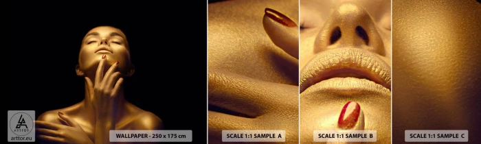 Fototapetenmuster Standard Eco - Wie goldene Seide - Frau, Das Gesicht einer Frau, Körper - 100x30 cm