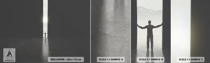 Fototapetenmuster Standard Eco - Ein Schritt in eine strahlende Zukunft - Abstraktion, Mann, Stück - 100x30 cm