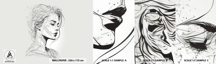Fototapetenmuster Standard Eco - Porträt im Gedanken - Frau, Porträt, Linie - 100x30 cm