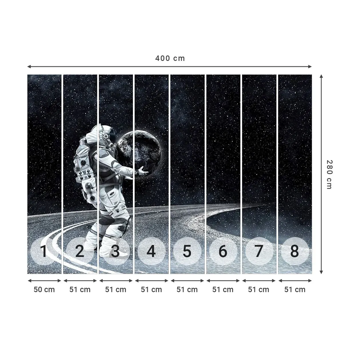 Selbstklebende Fototapete Deluxe Sticker - Auf der Milchstraße - Kosmos, Astronaut, Fantasie - 400x280 cm
