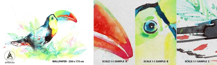 Fototapeten Muster Premium Sand - So bunt wie Südamerika - Vogel, Tukan, Für Kinder - 100x30 cm