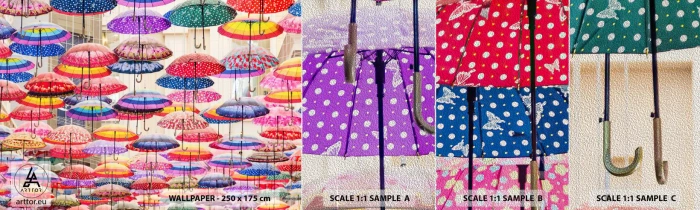 Fototapeten Muster Premium Sand - Stadtwiese - Stadt, Bunte Regenschirme, Stück - 100x30 cm