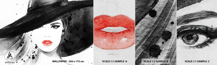 Fototapeten Muster Premium Sand - Frau in schwarz - Frau, Das Gesicht einer Frau, Porträt einer Frau - 100x30 cm