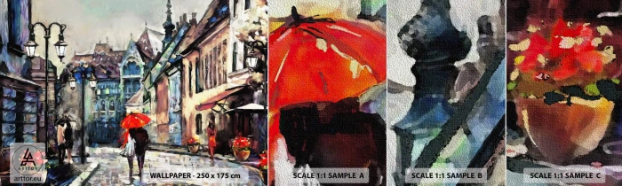 Fototapeten Muster Premium Sand - Regen für Zwei - Stadt, Die Architektur, Alte Stadt - 100x30 cm