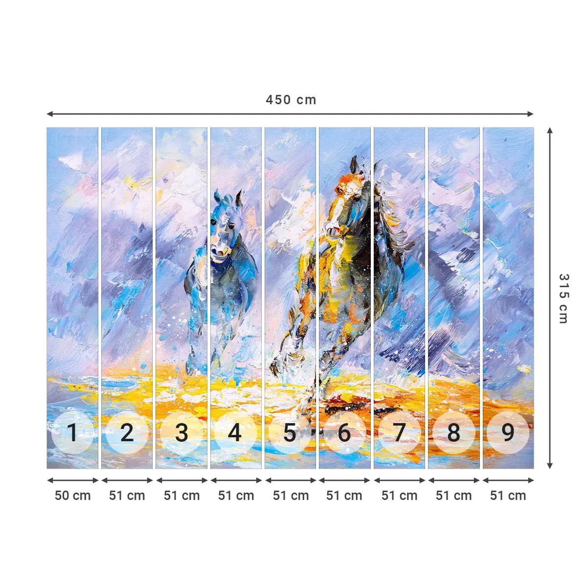 Selbstklebende Fototapete Deluxe Sticker - Galopp durch die Blendung - Tiere, Pferde, Impressionismus - 450x315 cm