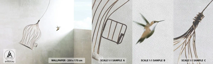 Fototapeten Muster Premium Sand - In seinem Element - Abstraktion, Vogel, Vogelkäfig - 100x30 cm